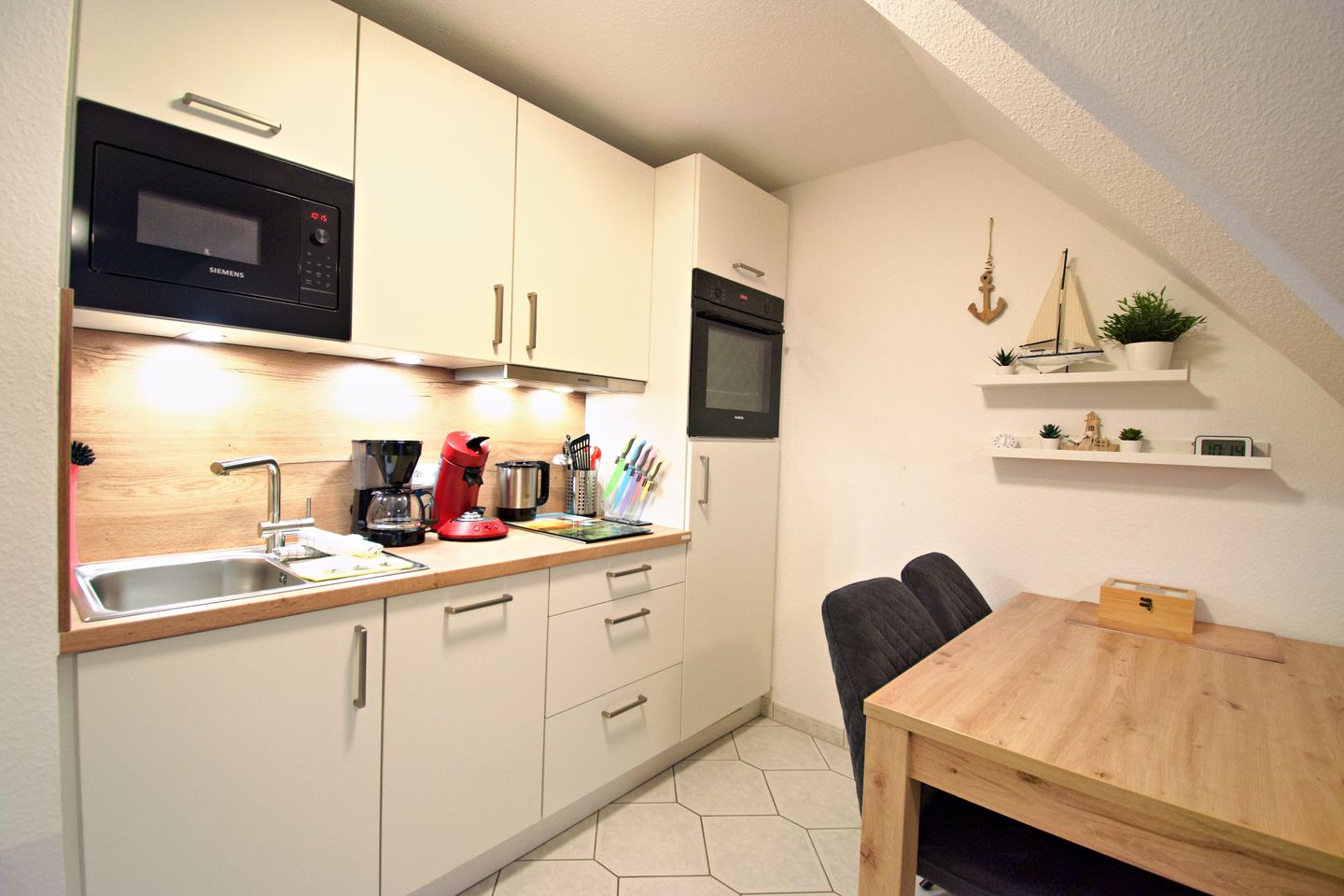 Die nagelneue Küche von Nolte (Einbau 2025) bietet Ihnen höchsten Komfort und moderne Markenqualität. Zur Ausstattung gehören ein hochwertiges 2-Platten-Ceran-Kochfeld, eine Siemens-Mikrowelle, ein Siemens-Herd, ein Siemens-Kühlschrank mit Gefrierfach sowie eine Siemens-Spülmaschine. Zusätzlich stehen eine Senseo-Kaffeemaschine, eine klassische Kaffeemaschine, Toaster, Wasserkocher und Eierkocher bereit – perfekt für die Zubereitung Ihrer Urlaubsmahlzeiten in bester Ausstattung.